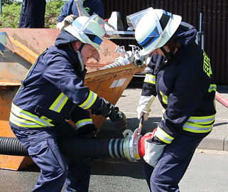 ...Wassertrupp mit perfektem kuppeln, Angriffstrupp mit langer "Wartezeit", Schlauchtrupp schnell