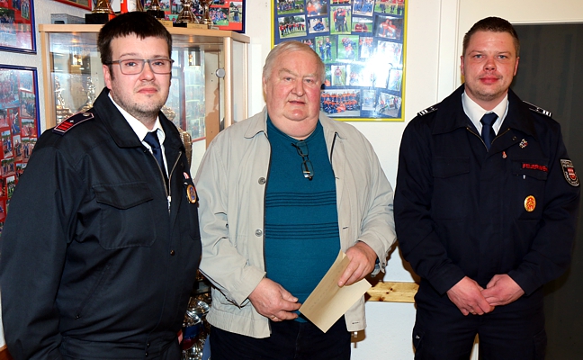 Löschgruppenführer Kai Hohmeier führte die Versammlung, Frank Grimm wurde als neues Mitglied aufgenommen und gleich zum neuen Kassenprüfer gewählt