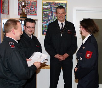 Diese Auszeichnung bekam Werner vom stellv. Wehrführer Thorsten Kohlmeyer angesteckt.