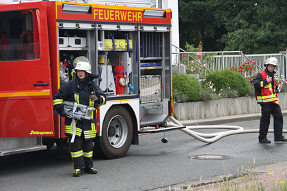 Nachdem die Erkundung abgeschlossen war bekamen die Löschgruppen Lohfeld und Holtrup die Aufgabe unter PA zur Menschrettung über zwei verschiedene Zugänge vor zugehen. Die Löschgruppe Eisbergen sollte eine Wasserversorgung von einem Überflurhydranten der direkt vor dem Betroffenen Objekt stand zu den Fahrzeugen von Lohfeld und Holtrup aufbauen.
