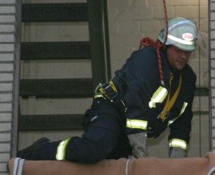 Kai hat den "Rettungsdienst" organisiert und darf natürlich auch die Wand runter laufen